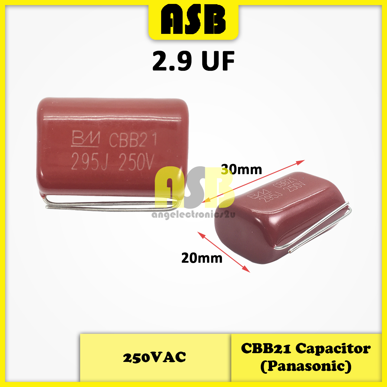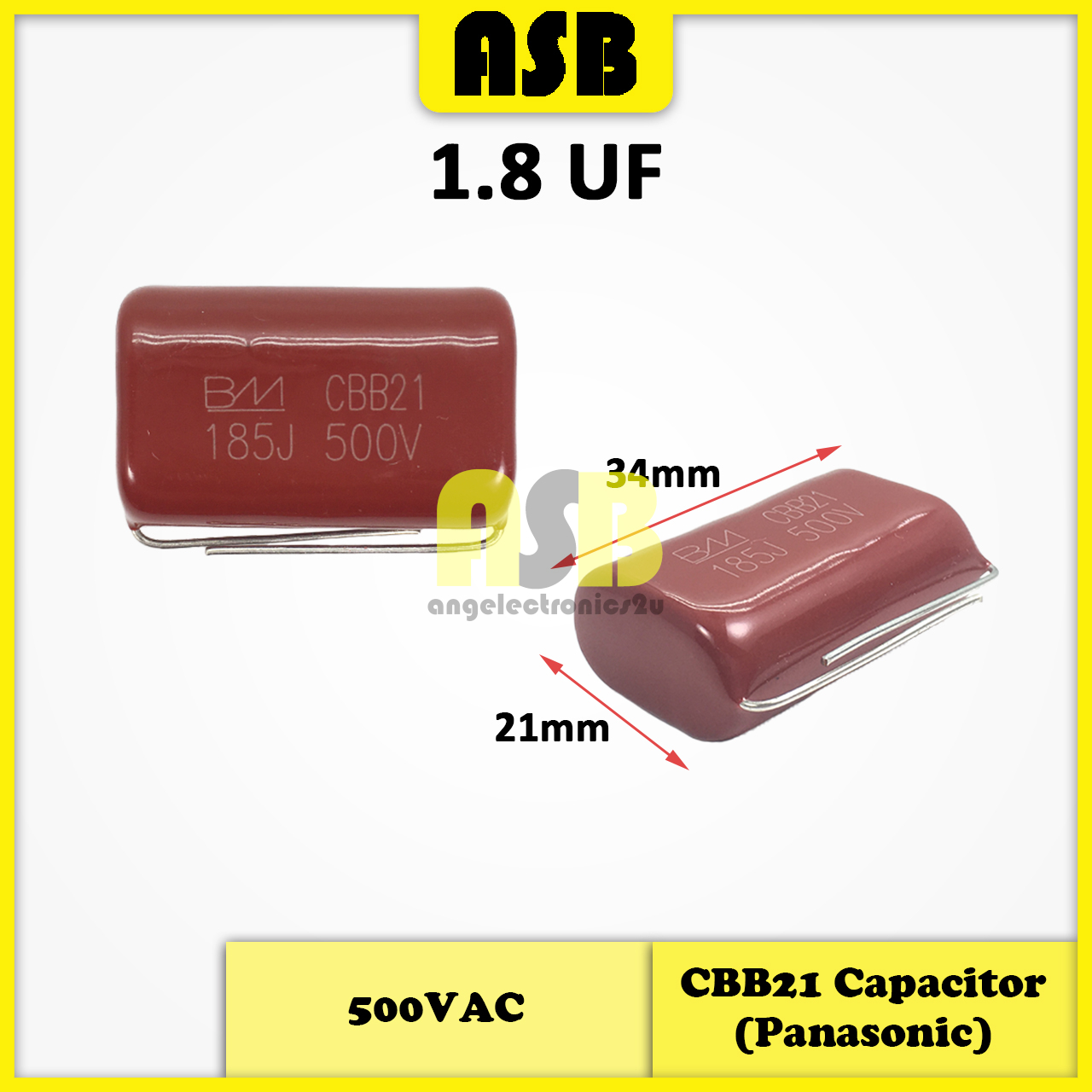 (1pc) CBB21 / CBB22 Capacitor / Condenser ( Panasonic ) ( 250VAC / 500VAC ) ( 1.8uF / 2.4uF / 2.9uF / 3.4uF / 5uF )
