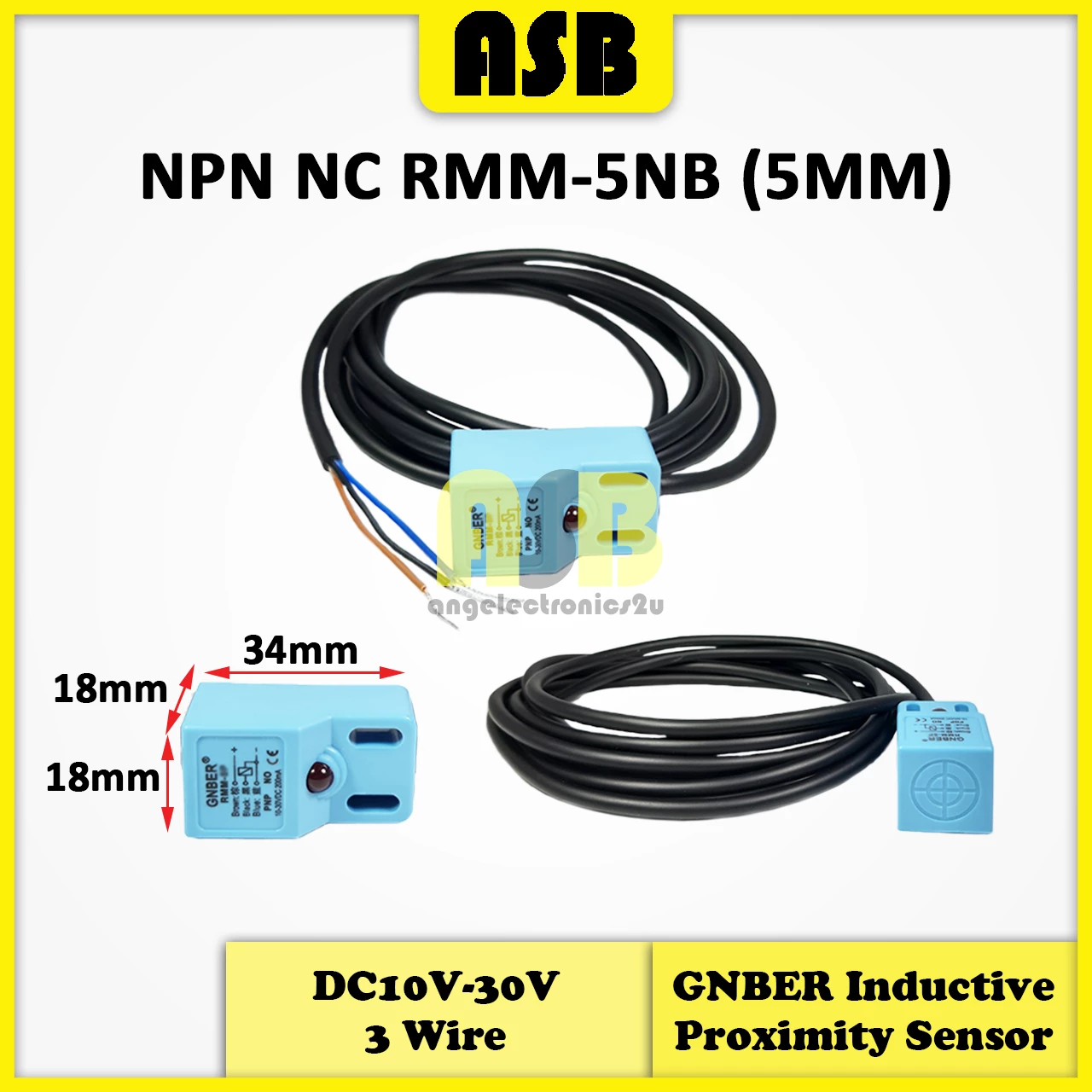 (1pc) GNBER ( RMW / RMM ) Inductive Proximity Sensor Rectangular Type ( DC 10V - 30V ) ( 2 Wire / 3 Wire )