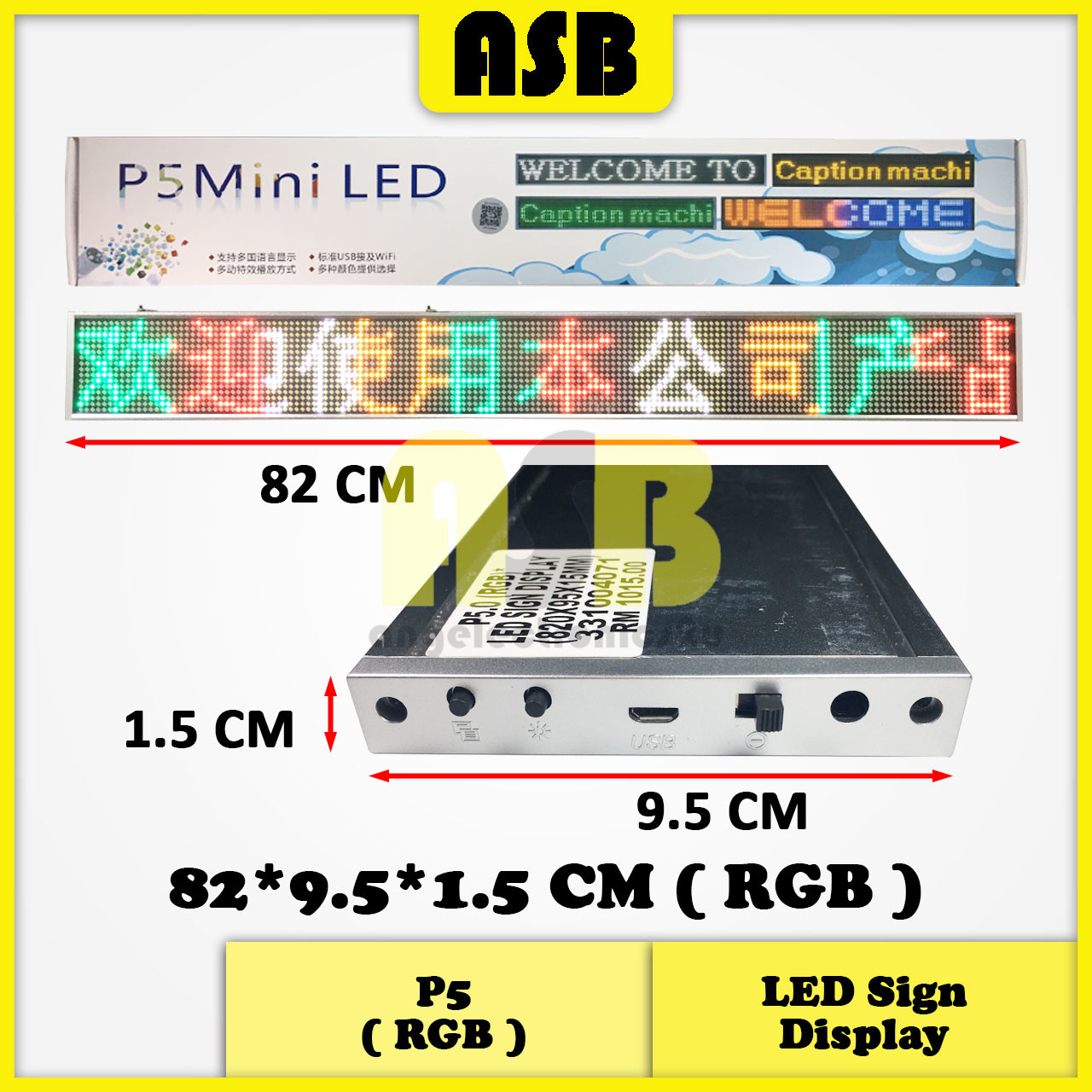 (1pc) LED Sign Display P5 ( 50*9.5*1.5 CM / 82*9.5*1.5 CM ) ( Yellow / RGB )