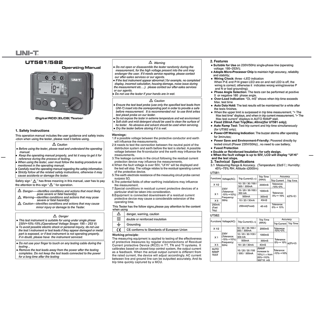 (1pc) Uni-T UT 582+ Digital RCD ( ELCB ) Tester / Penguji RCD Digital ( 362002152 )